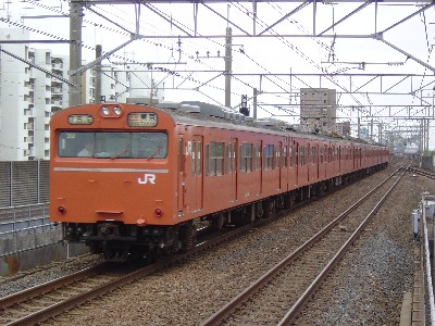 常磐・成田線の103系。 撮影場所 成田駅 |